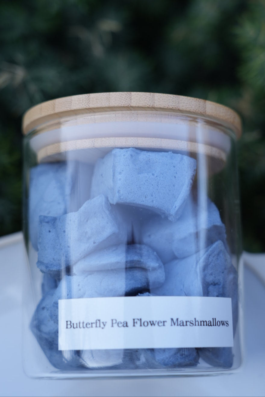 The Butterfly Pea Flower Marshmallows are not only delicious but also beneficial for your health! The butterfly pea flower offers incredible skin benefits and has calming properties. Enjoy marshmallows on top of a warm drink like coffee or tea! Each jar will come with 15-20 marshmallows depending on size! Additionally, these marshmallows are packed with collagen from the gelatin we use!