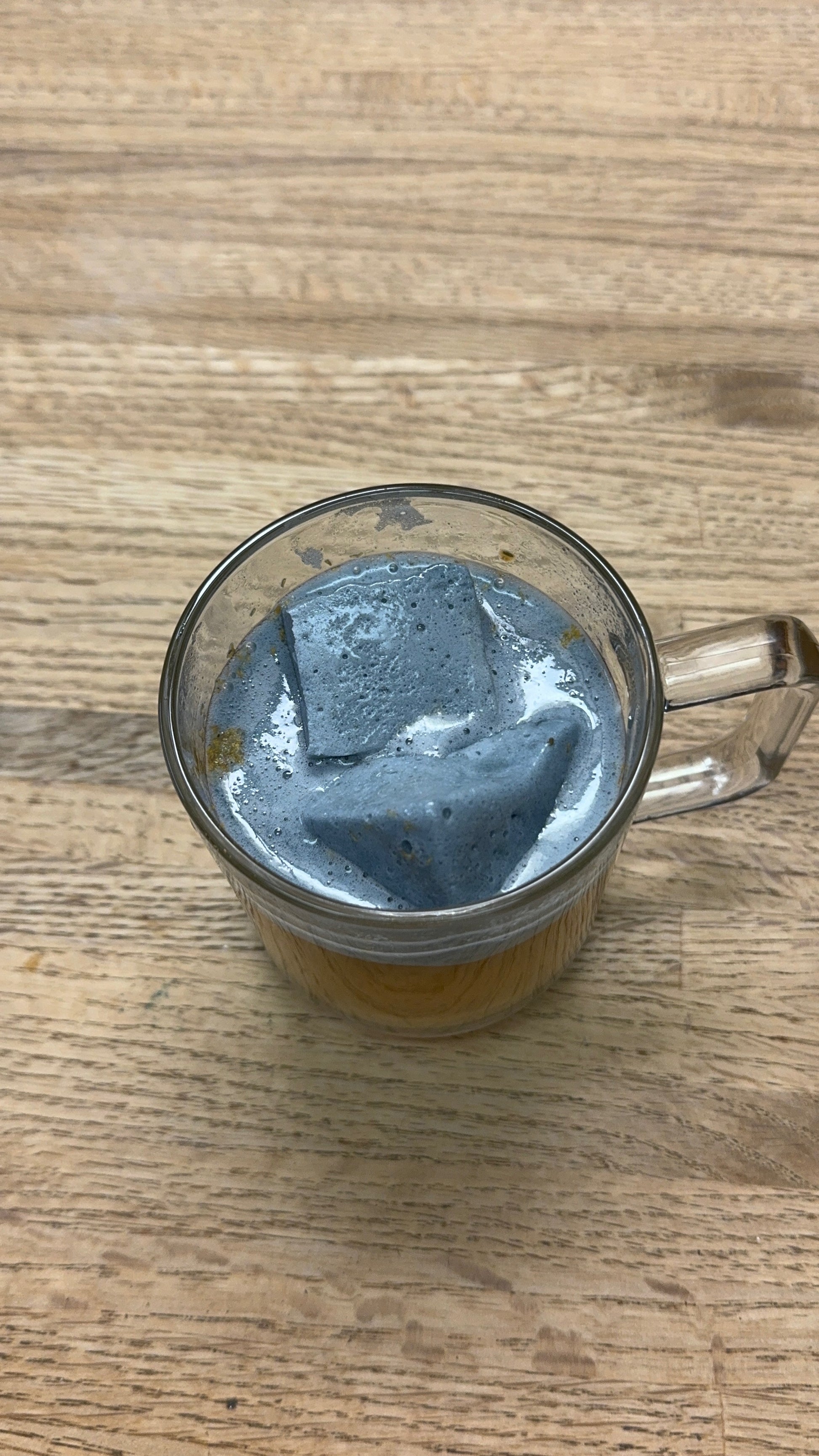 Ingredients are Bovine gelatin, Water, Maple syrup, Butterfly Pea Flower Powder.